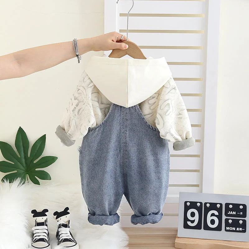 Denim Overalls Set 2-Piece Kids Outfit with Shirt & Jeans Stylish