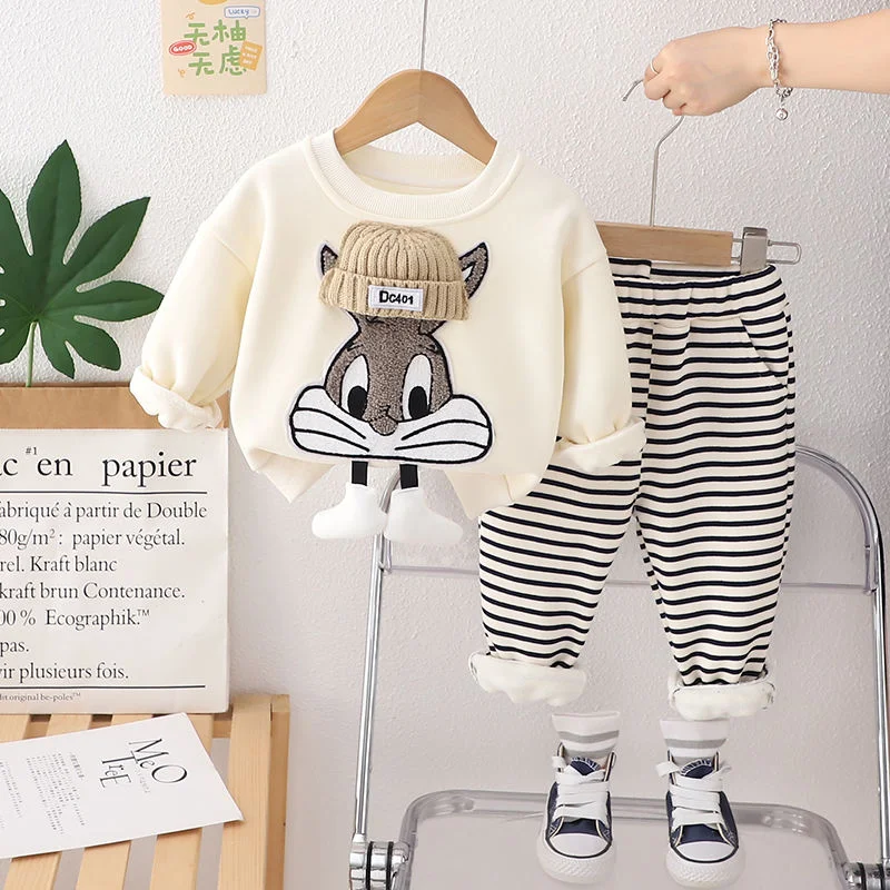 Velvet Hoodie & Striped Pants Suit – Stylish Comfort for Kids